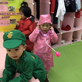 早操结束,各班陆续开展幼儿活动游戏。上午游戏活动内容有:“迪尼斯乐园”区域活动、角色游戏、“模拟拼插—太阳” 和“恐龙世界”结构游戏等。学生边观察游戏活动边做笔记,将有效把学校学习的知识和游戏体验实践有效结合,提升专业素养。