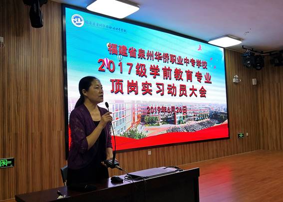 大会最后,学前教育部副主任谢育仪老师强调同学们在顶岗实习期间一定要注意安全,要跟老师、班主任、保持密切联系,无论同学们走到哪里,学校和老师永远都是大家最坚强的后盾。希望大家能在工作岗位上认真学习、努力实践,开阔视野、增长见识,圆满完成各项实习任务。