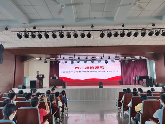 会上,张扬书记首先传达了上级文件精神,与全体教职员工共同学习了相关政策法规。为明确劳动教育的重要性,张扬书记强调了《关于全面加强新时代大中小学劳动教育的意见》,希望全体教师在日常教育教学中加强对劳动教育的重视;为规范出入境管理规定,张扬书记解读了《关于加强国家工作人员因私事出国(境)管理有关工作的通知》内容并要求全体教职工共同遵守;德高为师,身正为范。学期伊始,张扬书记与教职员工共同学习《福建省中小学教师职业道德考核办法(试行)》,要求全体教师规范教育教学行为,落实师德第一的标准,谨记初心,不负使命。本次大会,张扬书记对全体教职员工再次进行廉政提醒,要求大家坚守纪律红线,始终对纪律心存敬畏,时刻绷紧廉洁自律之弦,做到知纪明规,依法从教。