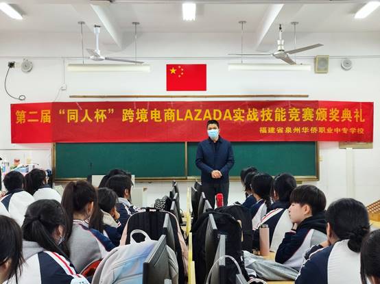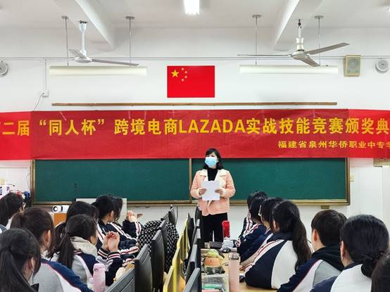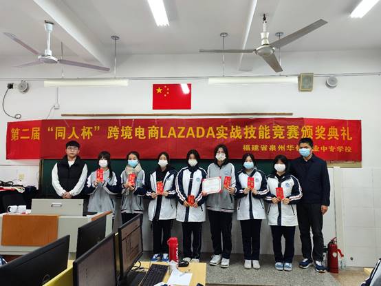 2022年12月以来,我校商务英语专业联合泉州三保网络科技有限公司举行了第二届“同人杯”跨境电商LAZADA实战技能竞赛,学生分团队比拼平台出单量,于2022年12月15日决出胜负。其中,施静雯团队获得第一名,张庭团队获得第二名,王嘉怡团队获得第三名。该竞赛的颁奖典礼暨订单班成果汇报于2022年12月16日上午于跨境电商实训室举行,我校许文忠副校长、商务英语组许晓婷组长、企业导师周子旭讲师及商务英语班师生出席了该仪式。