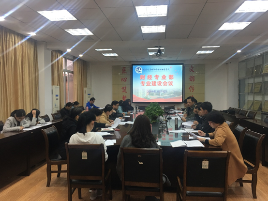 2019年3月14日下午,我校在综合楼三楼第一会议室召开财经专业部建设会议,校级领导、各处室负责人出席,财经部主任和专业教师参加会议。会议由学校副校长张扬主持。