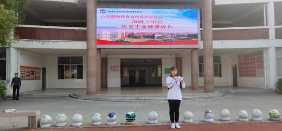 学生代表高锶锶在启动仪式上发表国旗下讲话,从同学们普遍面临的心理问题出发,提出建设性的解决办法,倡导同学们珍爱生命,接受自己的遭遇,并积极主动地调整心态,开动脑筋想办法,从而在挫折中寻找到新的机遇,成为主动掌控自己生活的人。此次国旗下讲话让学生认知了心理健康知识,初步树立了关注心理健康的意识,拉开了本次心理健康教育宣传月活动的序幕。
