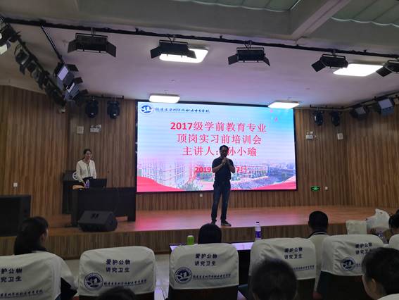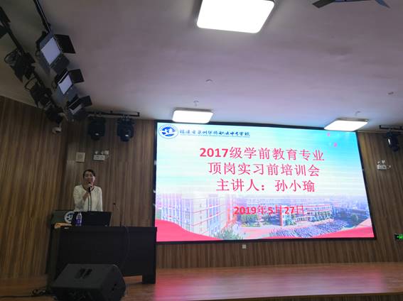为了提高我校2017级学前教育专业学生顶岗实习的教育教学能力,让学生更快更好地适应幼儿园教育工作,确保下个学期圆满完成顶岗实习任务。2019年5月27日下午,学前教育部邀请泉州市洛江区信和幼儿园孙小瑜园长入校开展顶岗实习前培训会。