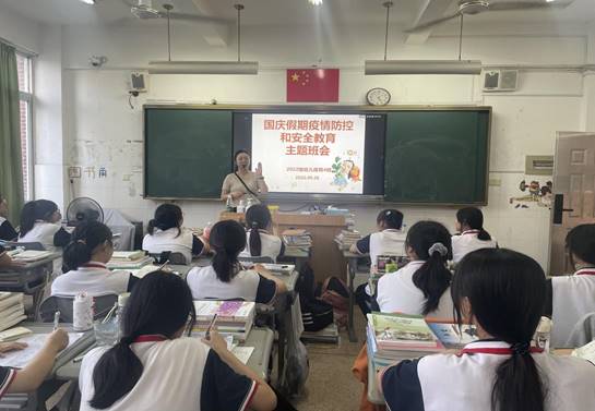 国庆假期临近,为确保学生平安度过国庆假期,我校各班在9月28日下午第三节班会课召开“国庆假期疫情防控和安全教育”主题班会。
