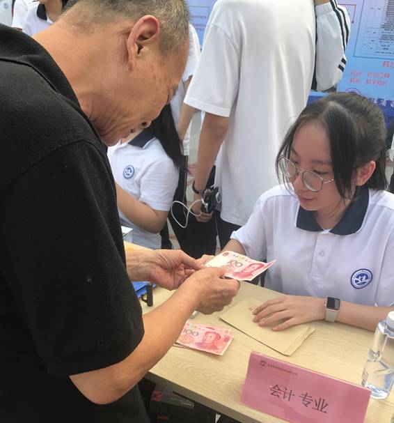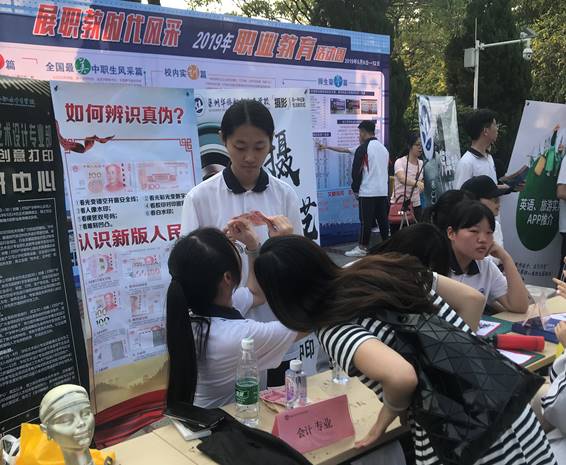 为了弘扬社区服务精神,践行社会主义核心价值观,增强职教教师和学生的社会责任感,推进社区精神文明建设,2019年5月14日下午,我校财经部会计专业的老师带领部分学生在中山公园开展了“如何辨别真假钞”的社区技术服务活动。