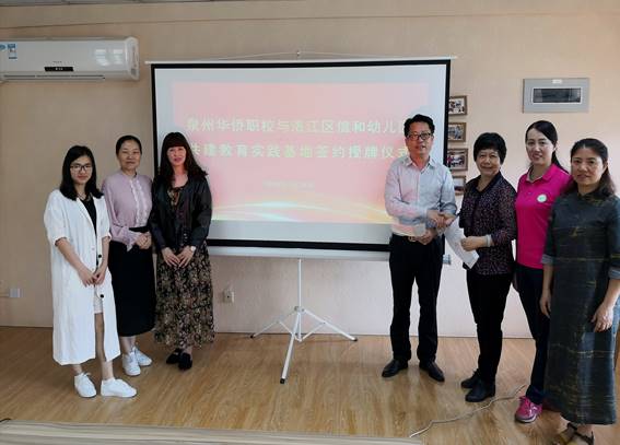 为了推进学前教育专业实训基地建设,进一步推动产学研合作上新台阶, 2019年4月28日,我校学前教育专业部与泉州信和幼儿园举行校企合作签约仪式。我校学前教育专业部主任吴鹏翔副校长、教研室副主任康江梅、专业部副主任谢育仪、专业部德育副主任叶琳、专业部教师郑宇冬以及信和幼儿教育有限公司总经理许秀平、信和幼儿园党支部书记翁师颖、园长孙小瑜、副园长林黎君参加了签约仪式。