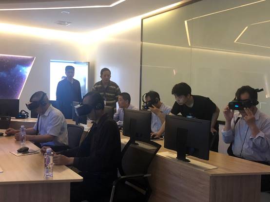 朱副局长一行首先参观了虚拟现实(VR)实训中心和物联网创新实训中心,我校张扬副校长为客人们介绍了我校相关课程的教学模式和教学设备。考察团成员纷纷戴上VR眼镜,感受新技术带来的神奇体验。