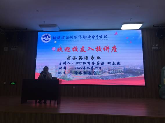2019年10月10日,我校商务英语专业邀请2015级商务英语专业毕业生姚春燕在校实训楼多功能学术报告厅举办讲座。参加讲座的人员为2017、2019级全体商务英语专业学生,以及许晓婷、郭健武、王艳芳、潘丽娜、王琪毅、洪珊珊等专业课教师。