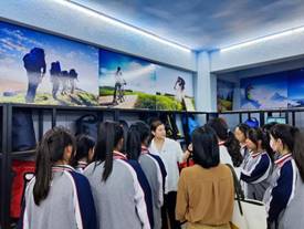 接着,该公司业务主管带领商英专业师生参观展厅,大家兴致勃勃,聚精会神地听着讲解。从讲解中得知:该公司主营产品为运动水袋和防水包,所有产品均使用模具热压制成,以保证百分百防水,这些产品广泛运用于骑行、郊游、爬山、漂流等户外运动。
