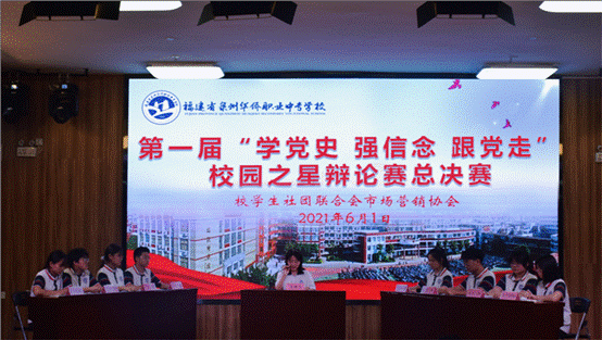 为庆祝中国共产党成立100周年,引导学生学习党史,传承党员精神,坚定政治信念,展现华职学子爱国爱党、文明有爱的良好氛围,拉近班级之间的距离,培养学生思辨能力,锻炼学生口才,4-5月,泉州华侨职校以“事含妙理,思辨天下”为宗旨,开展第一届“学党史 强信念 跟党走”校园之星辩论赛活动。
