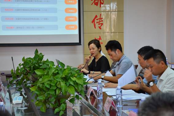 首先易耀苹老师向参加本次会议的专家委员介绍了我校现代商务服务专业群建设的相关情况。易耀苹老师表示,目前专业群各子专业发展态势良好,积极开展现代学徒制、订单班等人才培养模式,初步实现了深度校企合作及产教融合;同时,在校领导的大力支持下和专业群全体老师的共同努力下,各子专业在各级主管部门举办的各类竞赛中取得了不俗成绩。