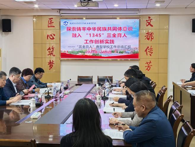 紧接着,张扬以《探索铸牢中华民族共同体意识融入“1345”三全育人工作创新实践》为题,从创新理念、主要举措、建设成效和经验总结四个维度,向专家组系统汇报了学校“三全育人”典型学校培育建设的整体进展与实践成果。与会专家认真听取汇报,并对我校在“三全育人”建设工作中取得的成果表示高度赞赏和肯定。